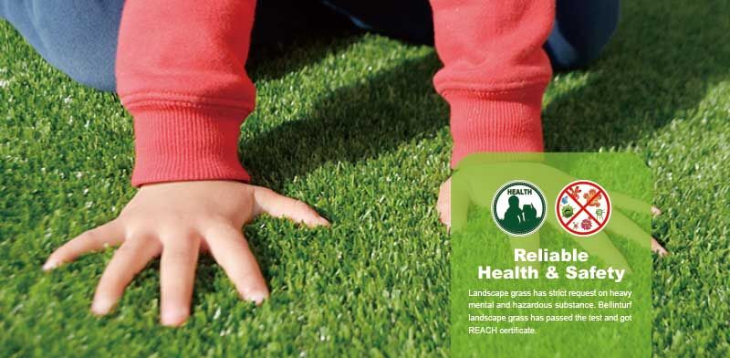تم تصميم عشب ساحات اللعب من بيلين تيرف بوضع عامودي جيد ومرن ومقاوم للتآكل والتلف وتم تصنيعه وفقاً لمعايير السلامة الصارمة التي تحظر إستخدام المواد والمعادن الثقيلة والخطرة بما في ذلك REACH و RoHS.