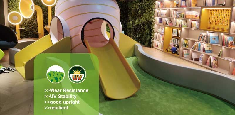 يتم تعبئة وحشو السطح الخاص بنظام عشب ساحات اللعب مع بطانة مناسبة لضمان وصوله لمعايير GMAX و HIC المعنية بقوة الإرتطام وإصابات الرأس التي تعتبر آمنة تماماً للأطفال للإستمتاع بها.